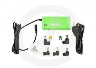 Alimentatore Kraun universale per netbook con potenza massima in uscita di 50 WATT. Nella confezione vengono forniti 5 diversi tipi di adattatori di connessione (Tip C, D, S, T, 12) e 2 adattatori voltaggio, uno da 12V e uno da 19V. Dispone inoltre di 2 porte USB che possono essere utilizzate per ricaricare la batteria di eventuali gadget elettronici come ad esempio un cellulare. Protetto da sovra tensione, sovra corrente, sbalzi di temperatura e corto circuiti. Bassa oscillazione e rumore. Ultra leggero e di colore verde. Disponibile anche nei colri rosso e bianco. CARATTERISTICHE Larghezza: 10,0 cm Altezza: 2,0 cm Profondità:5,0 cm Peso: 150 gr Contenuto della confezione: Alimentatore, 2 adattatori voltaggio 12V e 19V, cavo alimentazione, adattatori Tip C/D/S/T/12, astuccio per alimentatore e accessori, guida rapida Note: 2 porte USB ad uso ricaricabatterie Potenza max. erogata: 50 WATT Numero adattatori inclusi: 5 Tensione in ingresso:110V - 240V alternata